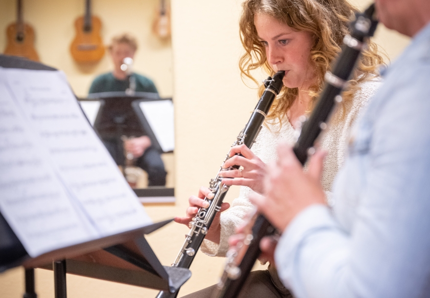 Luister tijdens het ensemble-concert naar de klanken van klarinetten en saxofoons bespeeld door: