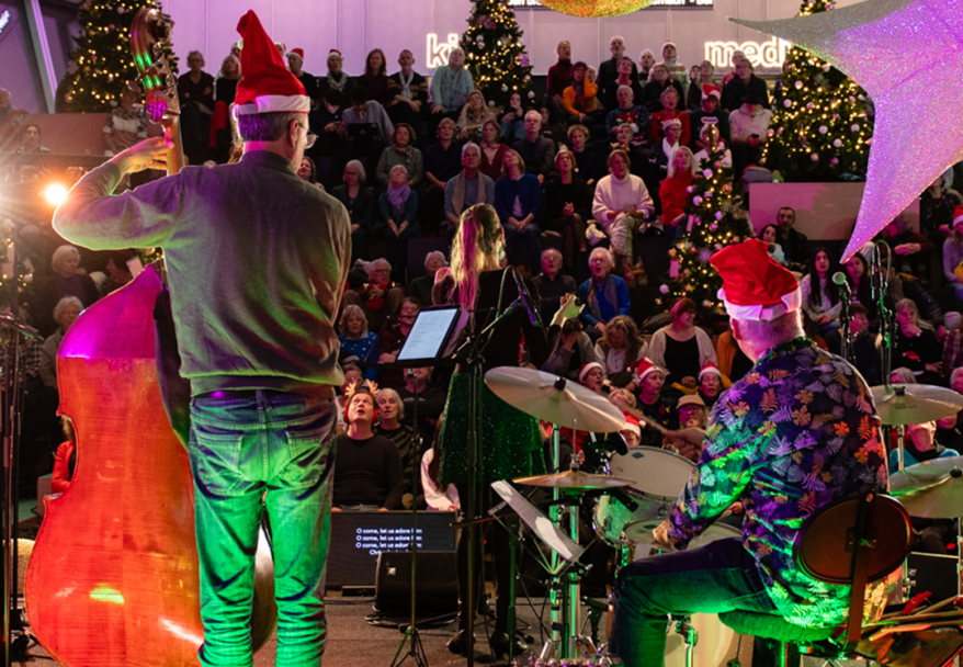 Samen kerstliedjes zingen in het Forum met livemuziek!