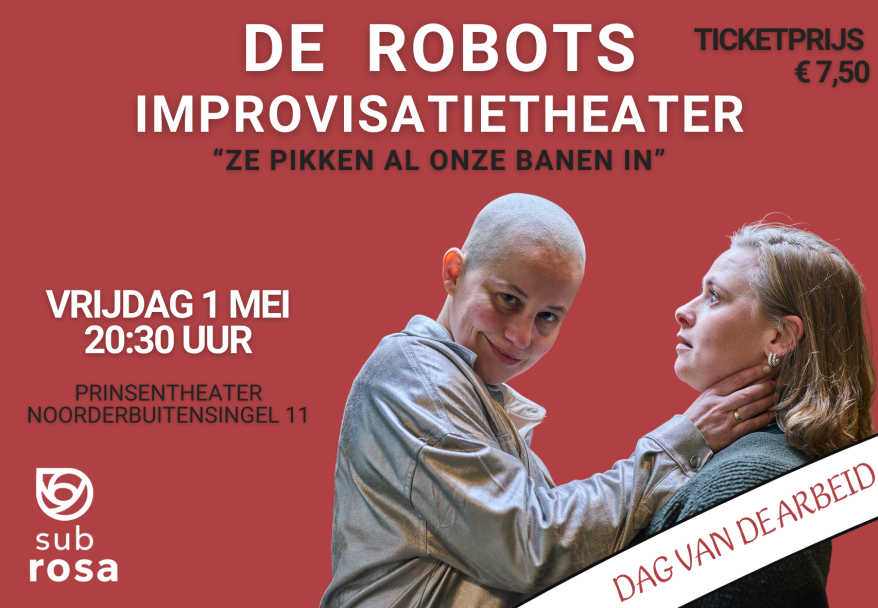 Op 1 mei duiken de spelers van Sub Rosa in een wereld waarin mens en machine steeds moeilijker van elkaar te onderscheiden zijn. Een avond vol improvisatie, onverwachte wendingen en scènes die ter plekke ontstaan.