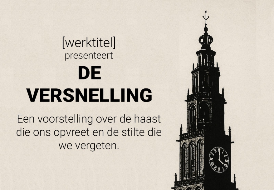 [WERKTITEL] is een samenwerking van improvisatiespelers uit verschillende plekken in de noordelijke provincies. Ze bundelen hun unieke stijlen, humor en energie tot een collectief dat even verrassend als herkenbaar is. Want zelfs op vijf voor twaalf kun je nog besluiten om even stil te staan.
