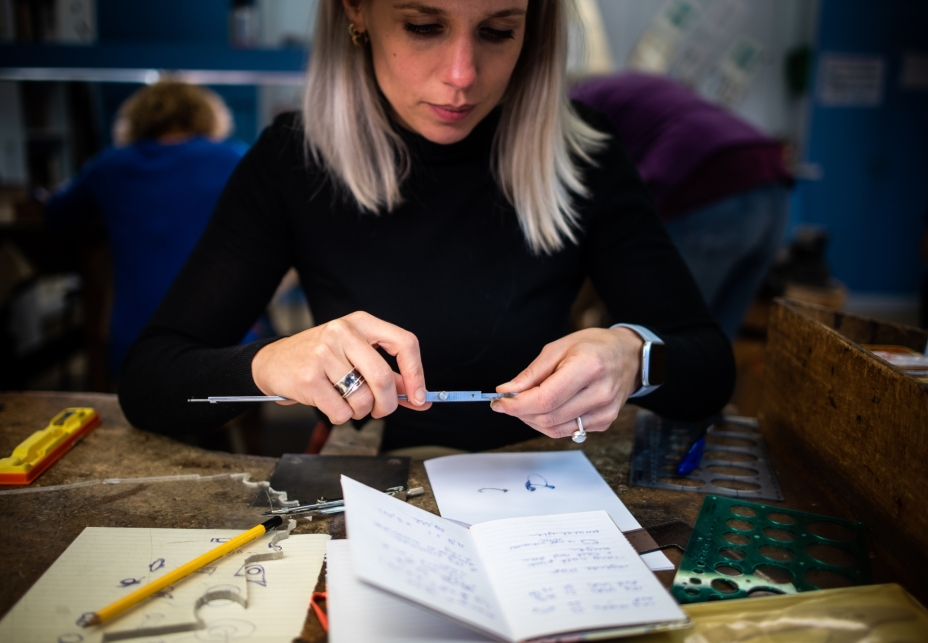 Je eigen sieraad ontwerpen? Volg een cursus edelsmeden bij VRIJDAG! Je gaat ontwerpen, vormgeven, zagen, vijlen, solderen en polijsten, emailleren, etsen, ciseleren en stenen zetten. Zo vorm je ruw materiaal vanuit je eigen idee of ontwerp om tot een echt en uniek sieraad of object.