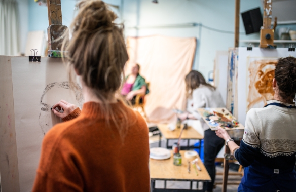 De groep bestaat uit beginnende en meer ervaren cursisten. Op deze manier kun je kennismaken met verschillende manieren van werken, er worden ervaringen en tips uitgewisseld en er ontstaan vaak levendige discussies over het werk. De begeleiding is individueel en gericht op de ontwikkeling van je eigen stijl en creatieve aanpak.