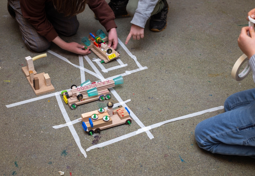 In onze ateliers mag alles rollen, draaien, wiebelen, friemelen en ontstaan. Het thema is ‘op wielen’, maar voel je vooral niet vastgeroest. Ontwerp een supercoole droomtractor, teken een kaart van een zelfverzonnen land, maak een voertuig dat nog nooit iemand heeft gezien… of bedenk iets totaal anders.
