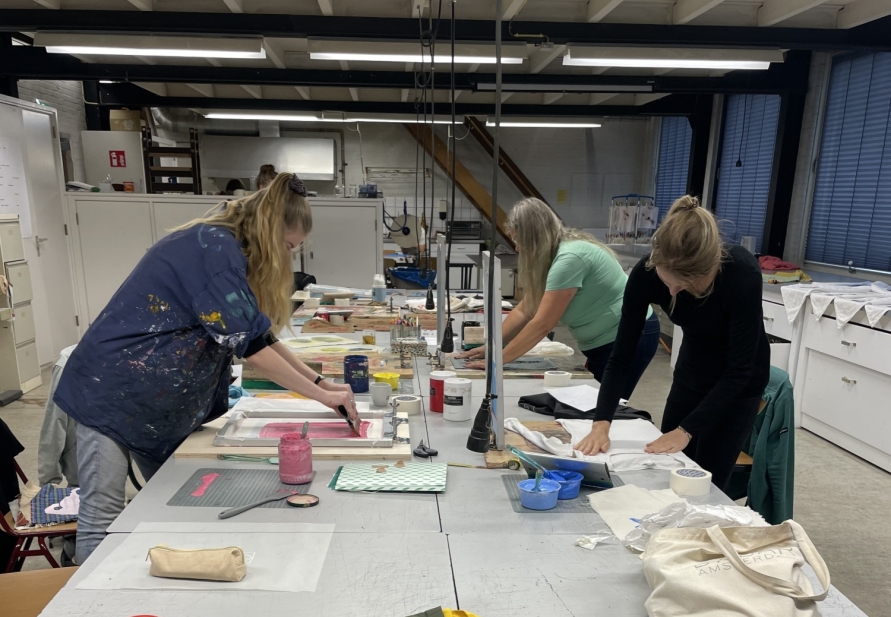 Daarnaast maak je een meerkleurendruk en repeterende patronen (all-over-prints). Dat doe je met behulp van druktechnieken, zoals sjabloondrukken en de zeefdruktechniek. En uiteraard ga je vooral veel doen. Denk aan kleden, lappen stof, kussens, shirts... noem maar op. Van alles is mogelijk!