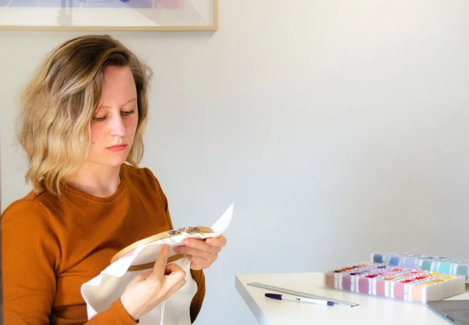 Dagmar doorliep Academie Minerva en is naast haar werk als borduur- en textielkunstenaar creatief assistent bij Teddy & Wool.