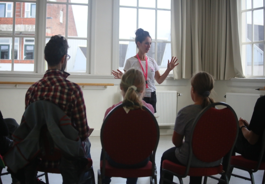 Hannah de Vries is theaterdocent bij VRIJDAG. Wil jij ook een workshop of cursus volgen bij Hannah? Bekijk het aanbod op deze pagina!
