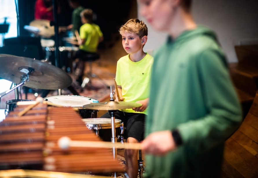 Do you want to become a percussionist? You can do that at VRIJDAG. For example, choose djembe, timpani, vibraphone, marimba or snare drum. But you can also take drum lessons with us.