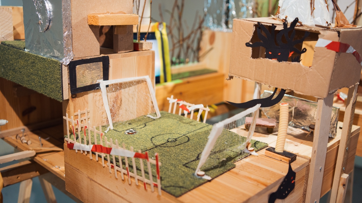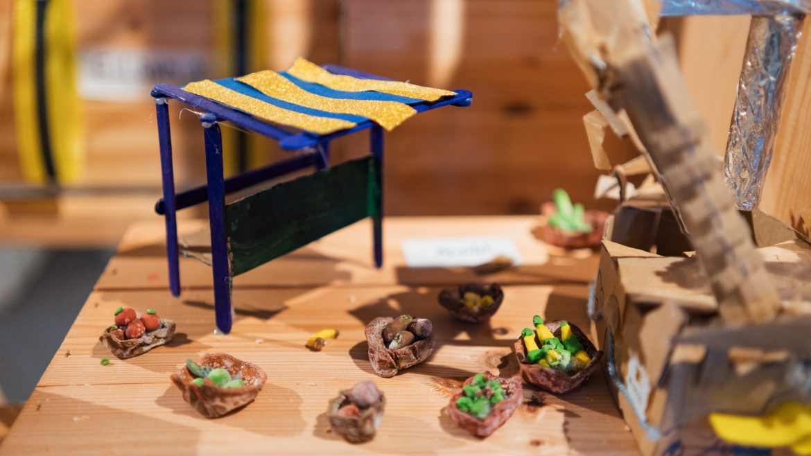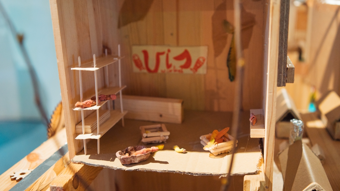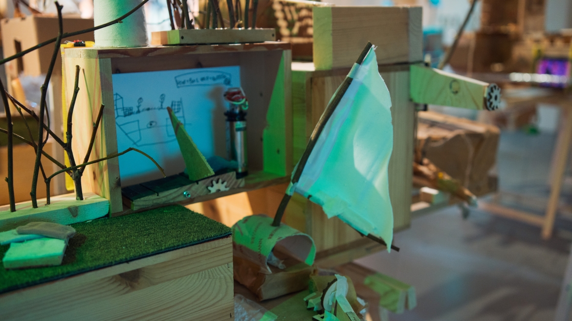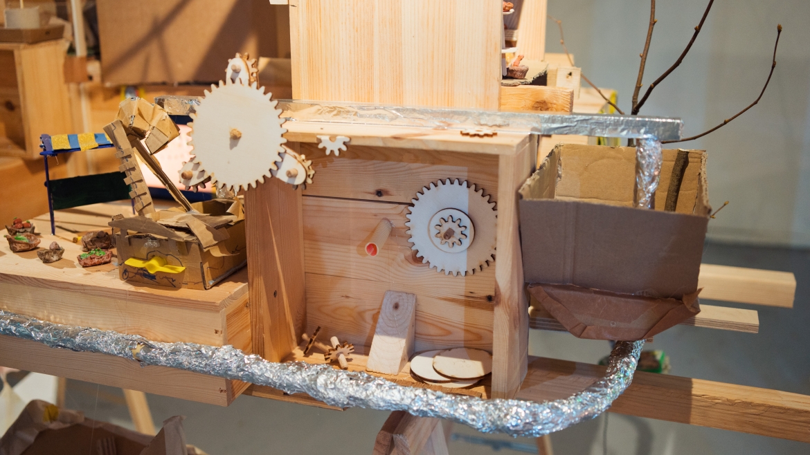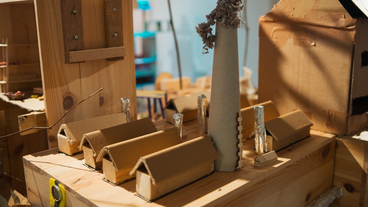 Elke ochtend begonnen we met een werkoverleg. We vroegen elkaar: "Wat ga je vandaag doen?" en "Wat heb je nodig om dat te maken?" De bouwgroep en de filmploeg gingen daarna hard aan het werk. Samen brachten ze het verhaal tot leven. Ze bouwden interieurs, boten, winkels, pakhuizen, machinekamers én zelfs een creep – een geheimzinnig wezen dat in de stad rondzwerft.