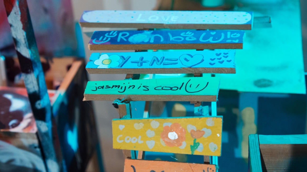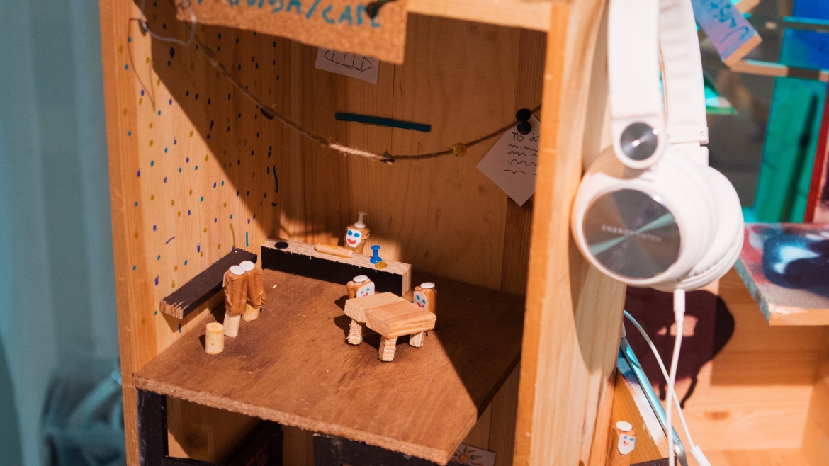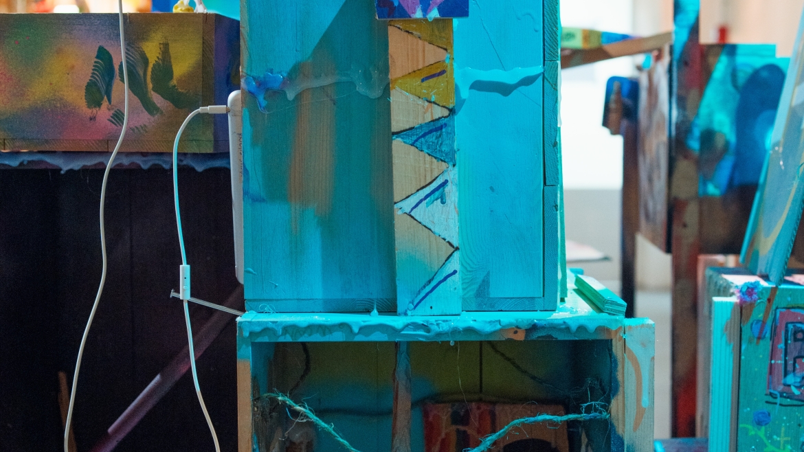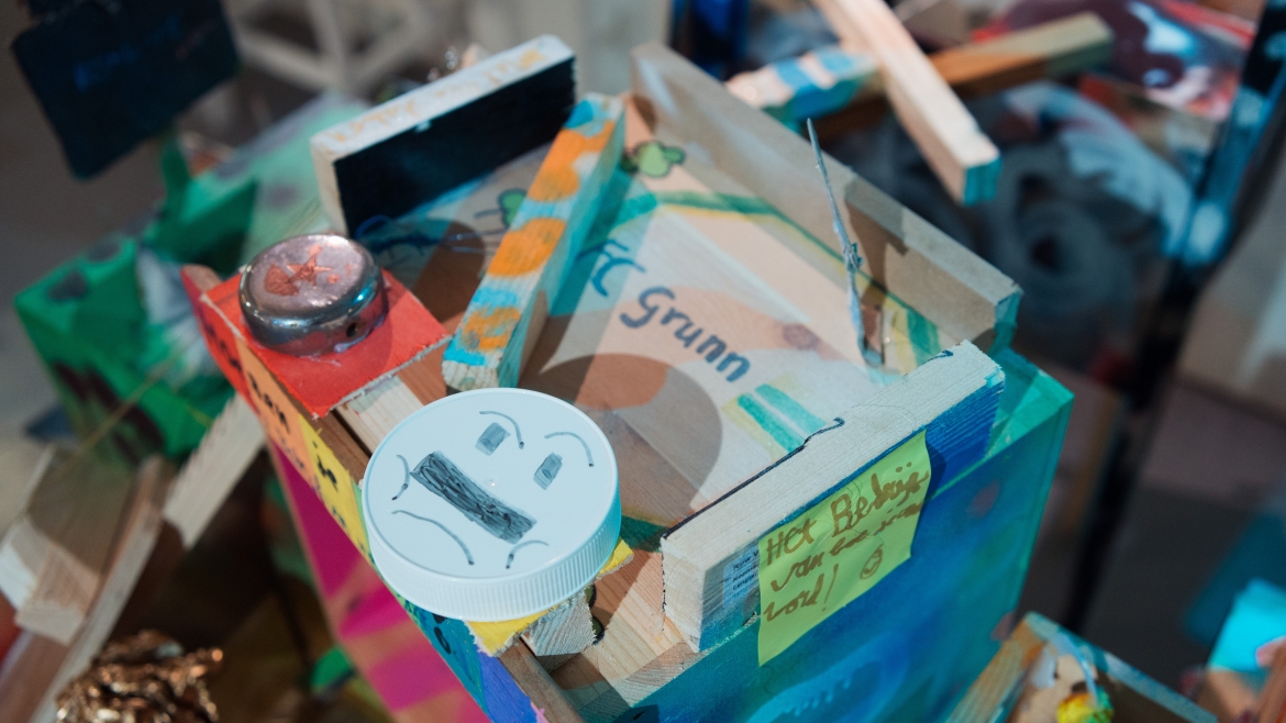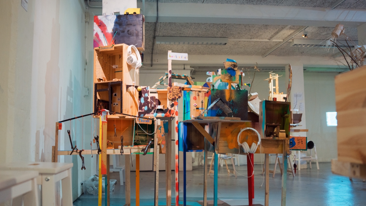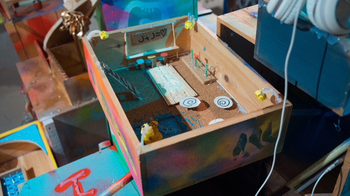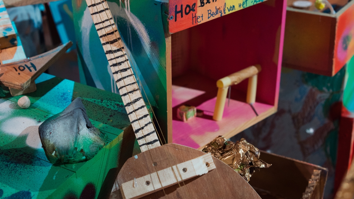 Deze gebouwen zijn door de kinderen gemaakt van houten kistjes en restmaterialen. Ieder gebouw vertelt een eigen verhaal. De sfeer en betekenis ervan zijn vertaald naar muziek. Zo zijn unieke soundscapes, klankverhalen, een lied en een rap ontstaan. Deze zijn te beluisteren via drie verschillende koptelefoons. De bruggen tussen de eilanden zijn bespeelbaar. Ze verbinden de verschillende gebouwen met elkaar.