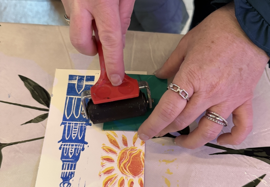 Lino-drukken bij Cultuurkiosk De Slak in De Wijert