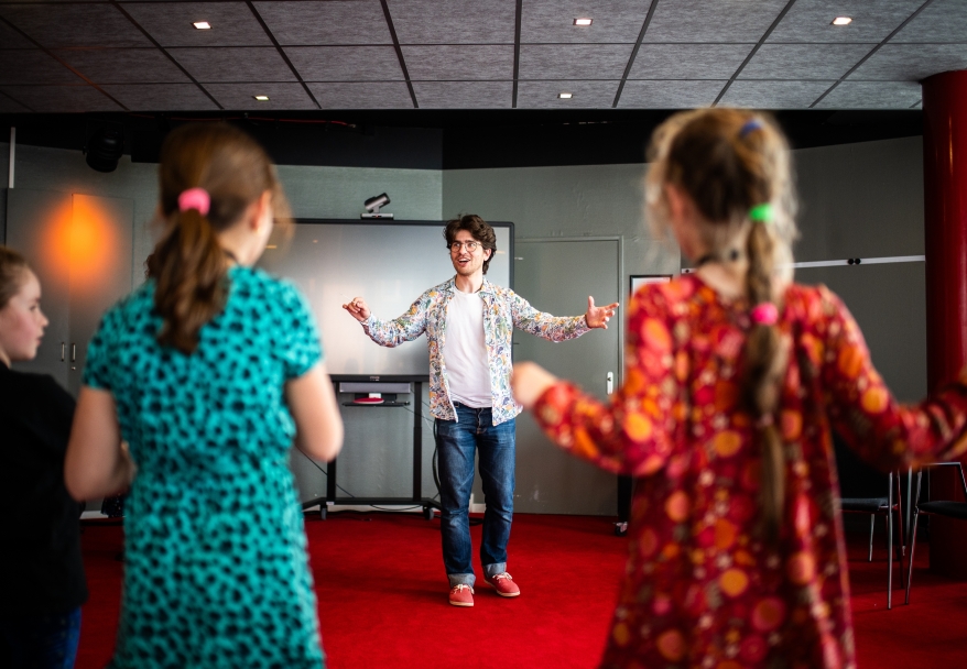 We maken samen muziek en… iedereen mag een keer de groep leiden als dirigent! Zo leer je luisteren naar elkaar, samenwerken zonder woorden en je eigen ideeën omzetten in muziek. 🎶