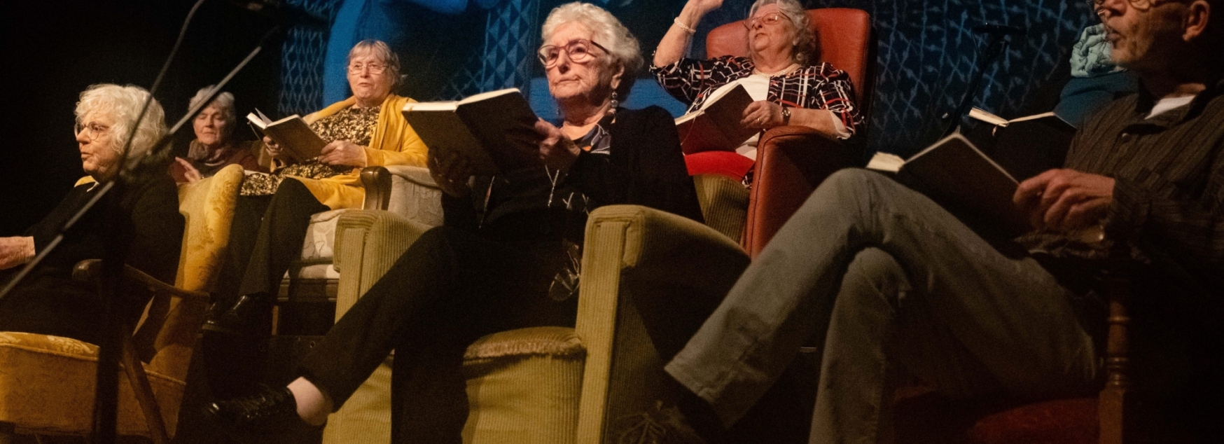 Pauline van der Kolk, projectleider VRIJDAG in de Buurt: "Wow. Het is vrijdagavond en ik zit in het Dok, een buurtcentrum in de Groningse wijk Lewenborg. Op het podium zitten acht ouderen. Ze vertellen over opgroeien in andere tijden, over trouwen en kinderen krijgen. Over dingen waarover je niet praatte, die gewoon zo gingen. Over vrijheid en voor jezelf kiezen. Over ouder worden, over leven. En ze zingen over zeilen op de wind van vandaag. Ze zijn breekbaar en sterk tegelijkertijd. Hun verhalen raken, zijn eerlijk, ontroerend en soms grappig.