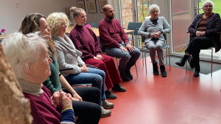 De ochtend stond in het teken van kennismaken met elkaar en met de makers: Janneke, Rozan en Han. We zongen Het Dorp van Wim Sonneveld en bespraken met elkaar waar we opgroeiden; in de stad, in een dorp, op het platteland. Een mooie manier om een klein inkijkje te krijgen in de herinneringen van anderen. En als vanzelf gingen we aan de slag met een theateroefening waarbij we ons ervan bewust werden dat je een zin op heel veel verschillende manieren uit kunt spreken waardoor het karakter van dat wat je zegt ineens heel anders kan zijn. De deelnemers hebben aan het eind van de ochtend opgeschreven waarom ze meedoen aan dit project en wanneer het voor hen geslaagd is. Informatie die voor Janneke, Rozan en Han erg belangrijk is om hun werkwijze op af te kunnen stemmen.