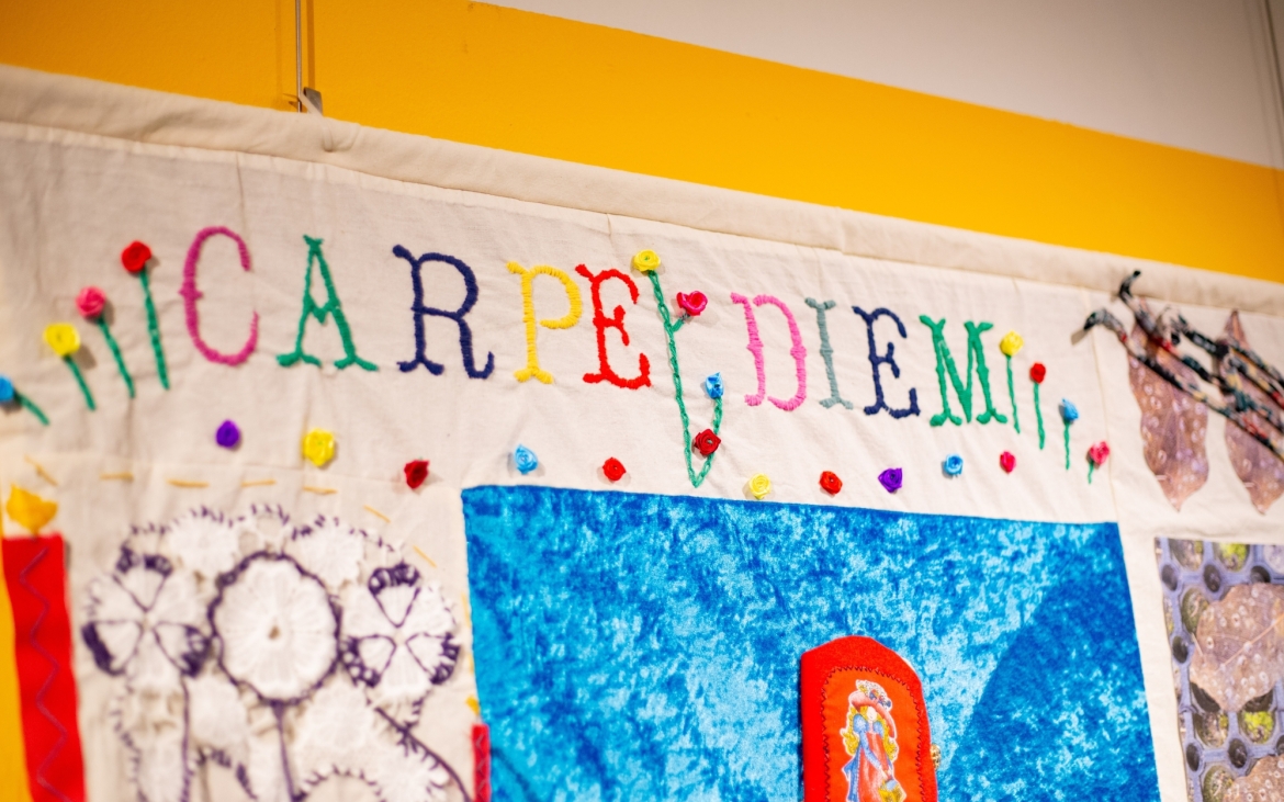 "Als je afscheid moet nemen van iets of iemand in je leven, zoals een dierbare, je gezondheid of je werk, dan gaat dat gepaard met veel emoties: verdriet, wanhoop, leegte. En dan kun je natuurlijk gaan praten met een therapeut, uithuilen bij een goede vriend of vriendin. Maar je kunt je gevoelens ook transformeren. Dat laat dit project heel mooi zien en zo heb ik het ook ervaren.” schreef Bianca van Dijk destijds als deelnemer van het project Afscheid is anders Vasthouden. In acht weken tijd borduurde een kleine groep van acht deelnemers uit Groningen Zuid een wandkleed met als thema verlies.