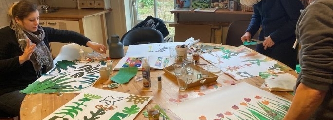 Vorig jaar hielp cultuurcoach Kitty Boon bij het opzetten van de Creatieve Werkplaats in de Wiershoeck in Beijum. Er wordt lesgegeven door VRIJDAG docenten Tabitha Brouwer en Marloes Overweg en door wijkbewoner Catharina Nieuwenhout.