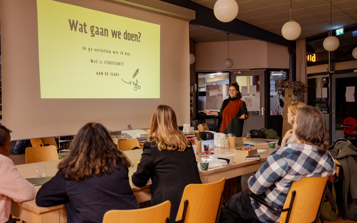Het mooie van dit project is dat de buurt actief meedoet. Eerder organiseerden we een wandeling door de wijk. Buurtbewoners hielpen toen om geschikte plekken te vinden voor de kunst, zoals kale muren of oude elektriciteitskastjes. Daarna waren er workshops waarin bewoners ideeën voor straatkunst konden inbrengen. Bekijk hieronder de foto’s om een indruk te krijgen van de workshops.