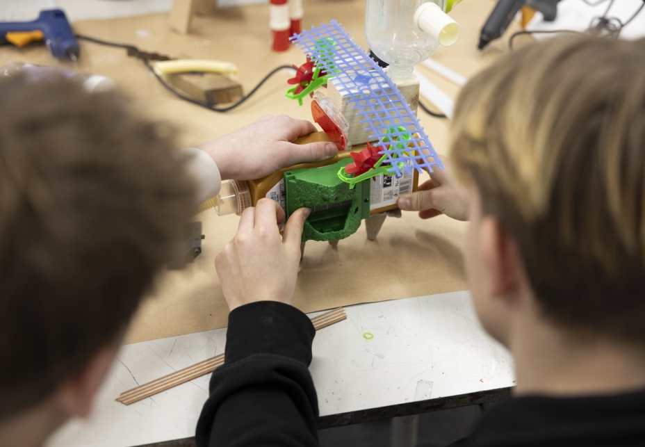 Deze workshop draait om het scheppen van een fantasiedier met een mix van materialen. Leerlingen onderzoeken, schilderen, plakken en lijmen, en werken daarnaast met materialen zoals metaal en karton. Zo ontdekken ze hoe verschillende materialen elkaar versterken en tot een levendig droomwezen kunnen leiden.